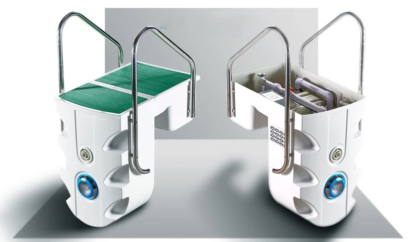 – 2 tay vịn làm bằng inox 304 sáng bóng, đồng thời trên thân bình lọc là các rãnh khoét sâu chắc chắn, thiết kế vừa vặn với một mũi bàn chân đặt vào, bình lọc thông minh PK – 8026 hoàn toàn thay thế chức năng của một thang hồ bơi, có thể giảm việc lắp đặt thang, tiết kiệm chi phí cho chủ đầu tư.