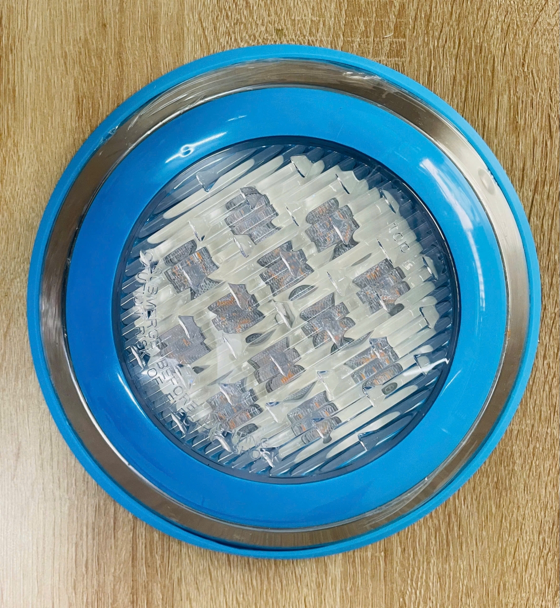 Đèn sử dụng vỏ inox không gỉ inox 304 có khả năng chống ăn mòn, chịu được môi trường nước và hóa chất hồ bơi như clo, muối. Bề mặt inox sáng bóng không chỉ tăng độ bền mà còn nâng cao tính thẩm mỹ cho không gian hồ bơi.