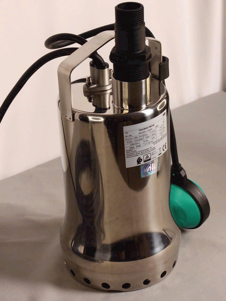 Wilo TS32 có cấu tạo vật liệu vỏ thân bơm, vỏ motor bằng thép không gỉ, cánh bơm dạng cánh nhựa, chân bơm lưới nên thích hợp dùng bơm nước thải sạch, nước thải bẩn như: